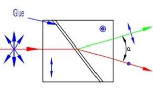 - Splits ordinary and extraordinary rays at a defined angle