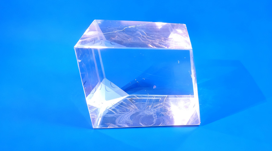 Calcite is a prismatic negative uniaxial crystal with extremely high birefringence and wide transmission range (200 to 2300 nm). Although soft (Mohs hardness 3) and hygroscopic, it is the preferred material for visible-near-infrared polarizing optical components. It can be used to fabricate Glan-Taylor and Glan-Thompson polarizers and beam splitters with extinction ratio higher than 10⁶:1.